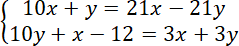 Drugie równanie układu powstało ze zdania: jeżeli przestawimy cyfry tej liczby i od nowo otrzymanej liczby odejmiemy 12, to różnica będzie trzy razy większa od sumy cyfr szukanej liczby.