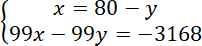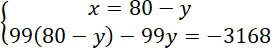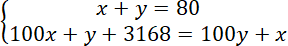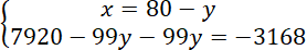 Drugie równanie układu powstało ze zdania: jeżeli mniejszą z nich dopiszemy do większej z lewej strony, to otrzymamy liczbę o 3168 mniejszą od tej, którą byśmy otrzymali po dopisaniu większej z nich do mniejszej z lewej strony.