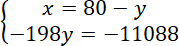 Pierwsze równanie układu powstało ze zdania: suma szukanych dwóch liczb dwucyfrowych jest równa 80.