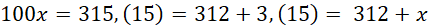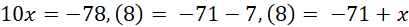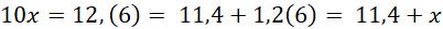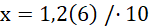 gdzie n jest liczbą cyfr w okresie. Następnie rozbij lewą stronę równania na liczby nieokresową i okresową będącą równą x. Zamień ją na x i wykonaj równanie, obliczając x. Powstały tak ułamek jest równy pierwotnej liczbie z okresem.