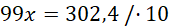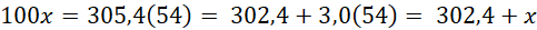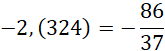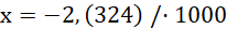 gdzie n jest liczbą cyfr w okresie. Następnie rozbij lewą stronę równania na liczby nieokresową i okresową będącą równą x. Zamień ją na x i wykonaj równanie, obliczając x. Powstały tak ułamek jest równy pierwotnej liczbie z okresem.