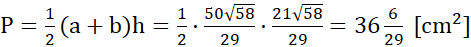 Środek okręgu wpisanego w trapez prostokątny jest odległy o 3 cm i 7 cm od końców dłuższego ramienia. Należy obliczyć pole danego trapezu.
