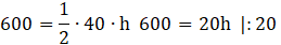 Korzystając z pola na trójkątny ścinek, oblicz jego h.