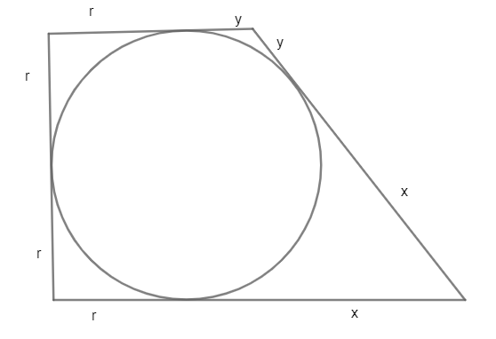 Skorzystałeś z twierdzenia o stycznych, które zapewnia nam równość boków jak na rysunku. Pole czworokąta wyraża się wzorem