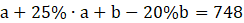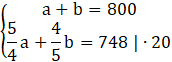 W tym zadaniu musisz wyznaczyć dwie liczby, których suma jest równa 800, a przy zwiększeniu jednej o 25%, a zmniejszeniu drugiej o 20%, ich suma zmniejszy się o 52.