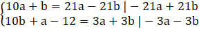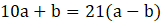 Szukana liczba dwucyfrowa jest 21 razy od różnicy między jej cyfrą dziesiątek i cyfrą jedności.