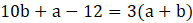Jeżeli przestawimy cyfry ty liczby i od nowo otrzymanej liczby odejmiemy 12, to różnica będzie trzy razy większa od sumy cyfr szukanej liczby.