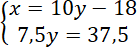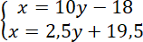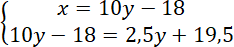 Pierwsze równanie układu powstało ze zdania: przed dwoma laty ojciec był 10 razy starszy od syna.