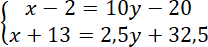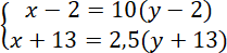 Drugie równanie układu powstało ze zdania: za 13 lat ojciec będzie od syna 2,5 razy starszy.