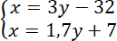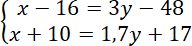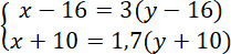 Pierwsze równanie układu powstało ze zdania: szesnaście lat temu matka była 3 razy starsza od córki.