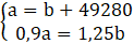 Podstaw a z pierwszego równania do 2 i wyznacz niewiadome.
