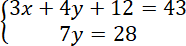 Drugie równanie układu powstało ze zdania: jeśli długość prostokąta zwiększymy o 7 cm, a szerokość pozostawimy bez zmiany, to jego pole powiększy się o 28