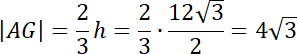 licząc od wierzchołka. Na tej podstawie wyznacz długość odcinka AG, a następnie korzystając z twierdzenia Pitagorasa długość jego wysokości.