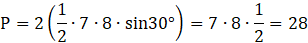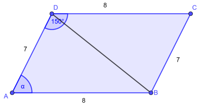 Oblicz pole równoległoboku ABCD jako sumę dwóch trójkątów.