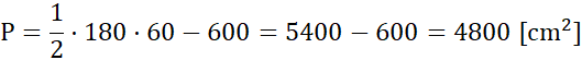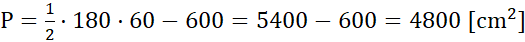 Pole uzyskanej chorągiewki to pole trapezu pomniejszone o ścięty trójkąt, czyli