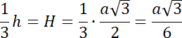 , a w ostrosłupie prawidłowym trójkątnym wysokość ostrosłupa dzieli wysokość podstawy w stosunku