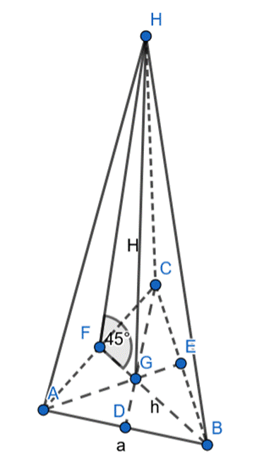 Wyznacz cosinus kąta między krawędzią boczną ostrosłupa a krawędzią podstawy, jeśli w ostrosłupie prawidłowym trójkątnym ściana boczna tworzy z płaszczyzną podstawy kąt 45°.