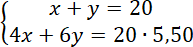 Drugie równanie układu powstało ze zdania: wafle waniliowe kosztują 4 zł za kilogram, a czekoladowe kosztują 6 zł za kilogram. Sprzedawca chce zrobić mieszankę tych wafli w cenie 5,50 zł za kilogram.