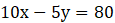 Za każde poprawne wykonane zadanie otrzymuje 10 punktów, a za złe 5 punktów. Uzyskał 80 punktów.
