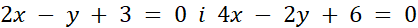Sprowadź oba równania prostych do takiej samej postaci, porównaj je i na tej podstawie oceń, czy równania opisują tę samą prostą.