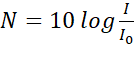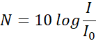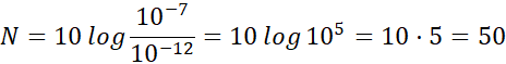 W tym zadaniu podaj liczbę decybeli zalecanego przez WHO maksymalnego poziomu hałasu (w środowisku) w porze dziennej, jeśli natężenie dźwięku wynosi wtedy 10-7 W/m2. Wiadomo, że poziom natężenia dźwięku wyraża się w decybelach (dB), a liczbę decybeli opisuje wzór