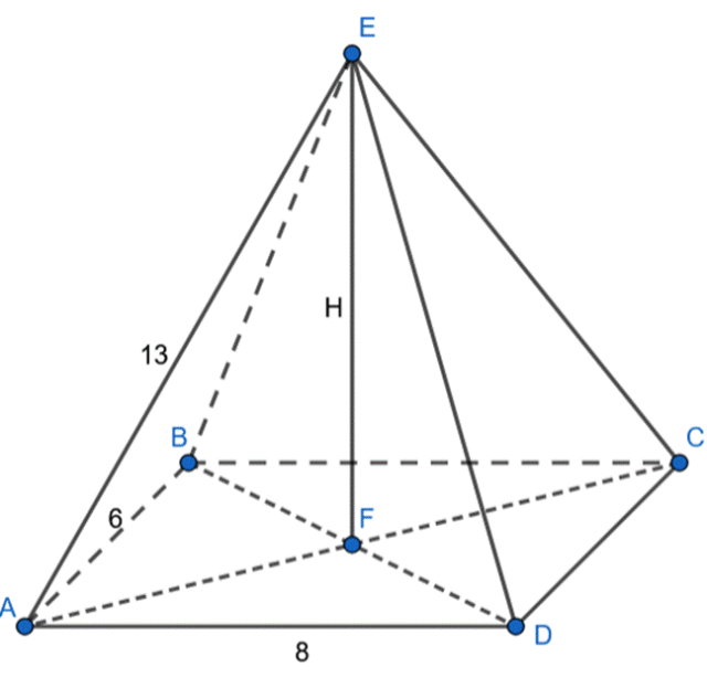 Wyznacz wysokość ostrosłupa, jeśli jego podstawą jest prostokąt, którego boki mają długość 6 cm i 8 cm. Wszystkie krawędzie boczne ostrosłupa mają po 13 cm długości.
