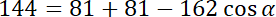 Wyznacz cosinusy kątów między krawędziami bocznymi tego ostrosłupa, jeśli podstawą ostrosłupa prostego jest trójkąt równoramienny, którego kąt między ramionami jest równy 120°, promień okręgu opisanego na tym trójkącie jest równy