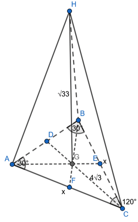 i oblicz długość krawędzi podstawy ostrosłupa. Następnie skorzystaj z twierdzenia cosinusów w trójkącie ACH i ABH:
