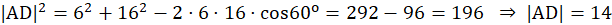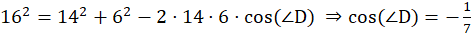 Wiadomo o czworokącie wypukłym ABCD, że |DC|=6, |AB| = 3|BC|, |AC|=16, przekątna AC przecina się z bokiem DC pod kątem
