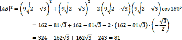 Skorzystaj z twierdzenia cosinusów w trójkącie ABC: