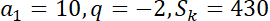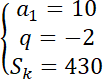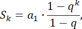 Wzór na k początkowych wyrazów ciągu geometrycznego: