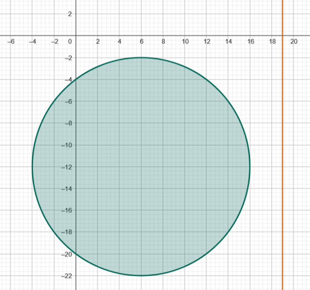Narysuj w jednym układzie współrzędnych wykresy koła i prostej i ustal ich część wspólną oraz wzajemne położenie.