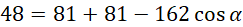 Wykorzystaj twierdzenie cosinusów, aby obliczyć kąt α:
