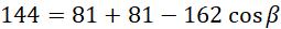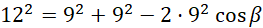 Wykorzystaj twierdzenie cosinusów, aby obliczyć kąt β: