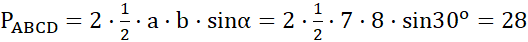 Sąsiednie boki równoległoboku ABCD mają 7 i 8. Równoległobok