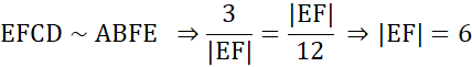 Odcinki |AB| = 18 cm i |DC| = 2 cm są podstawami trapezu ABCD. Punkty E, F zaznaczono kolejno na ramionach AD i BC tak, aby trapezy EFCD i ABEF były podobne. Należy obliczyć stosunek wysokości danych trapezów.