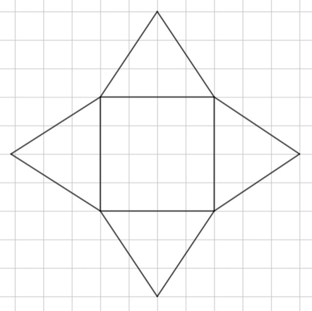 Wykonaj siatkę ostrosłupa prawidłowego czworokątnego.