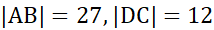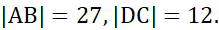 Odcinki są podstawami trapezu ABCD. Punkty E, F zaznaczono kolejno na ramionach AD i BC tak, aby trapezy EFCD i ABEF były podobne. Stosunek pól tych trapezów wynosi 4:9, zaś |EF|=18 cm. Należy obliczyć długość danego podstaw danego trapezu.