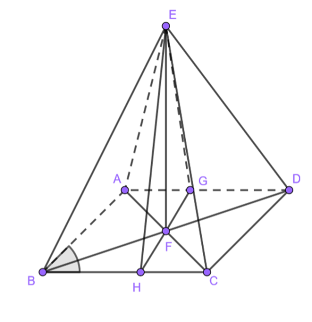 . Zauważ, że jesteś w stanie teraz wyznaczyć długość wysokości rombu. Po obliczeniu wysokości, zwróć uwagę na to, że wysokość rombu oraz wysokości przeciwległych ścian bocznych tworzą trójkąt równoramienny, a punkt F jest środkiem podstawy. Oznacza to, że jesteś w stanie obliczyć wysokość ściany bocznej, wykorzystując twierdzenie Pitagorasa.