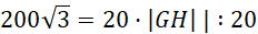 Wykorzystaj pole rombu do obliczenia długości wysokości GH: