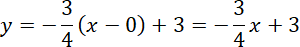 Funkcja przechodzi przez punkty (0, 3) i (4, 0)