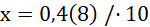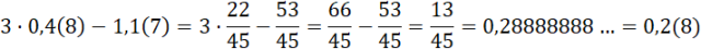 gdzie n jest liczbą cyfr w okresie. Następnie rozbij lewą stronę równania na liczby nieokresową i okresową będącą równą x. Zamień ją na x i wykonaj równanie, obliczając x. Powstały tak ułamek jest równy pierwotnej liczbie z okresem. Jak już przedstawisz liczby okresowe w postaci ułamka zwykłego, wykonaj działanie.