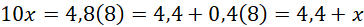 Skorzystaj z metody zamiany okresowych ułamków dziesiętnych na ułamki zwykłe. Zrób to poprzez oznaczenie ułamka dziesiętnego jako x, potem pomnożeniu obu stron ułamka przez
