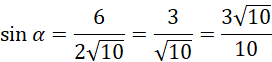 Wykorzystaj definicje funkcji trygonometrycznych kąta ostrego w trójkącie prostokątnym i oblicz wartość sin α: