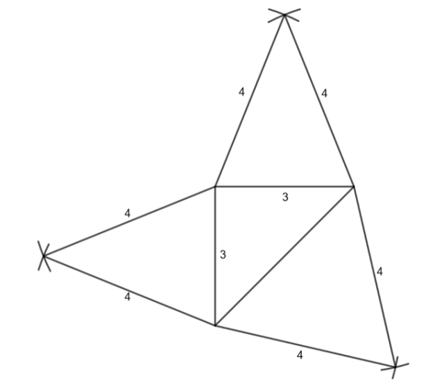Następnie dorysuj trójkąty równoramienne o długości ramienia 4. Odmierz cyrklem 4 cm i odpowiednio skonstruuj trójkąty równoramienne.