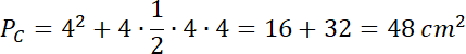 Wyznacz pole powierzchni całkowitej ostrosłupa prawidłowego czworokątnego, w którym wysokość jest równa