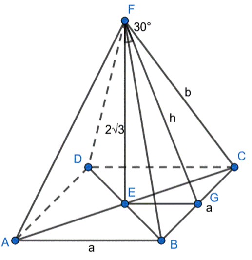 cm, a kąt między wysokością ostrosłupa a wysokością ściany bocznej ma 30°.