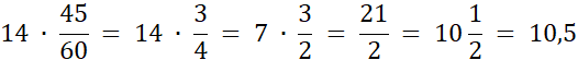 Statek płynie w dół rzeki (z prądem rzeki), więc jego prędkość to suma prędkości własnej i prędkości prądu rzeki: 9 km/h + 5 km/h = 14 km/h. 1 h = 60 min. Droga to iloczyn prędkości i czasu: