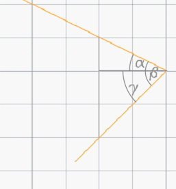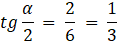 Stwórz trójkąt prostokątny, odczytaj długości jego boków i oblicz miarę kąta α za pomocą funkcji trygonometrycznej tangens