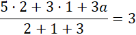 Wyznacz a, jeśli średnia ważona trzech liczb: liczby 5 z wagą 2, liczby 3 z wagą 1 i liczby a z wagą 3 jest równa 3.